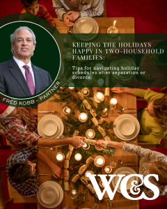 If you have any questions about holiday access schedules, I can be reached at FKobb@wcslaw.com, or see our Family Law Group.