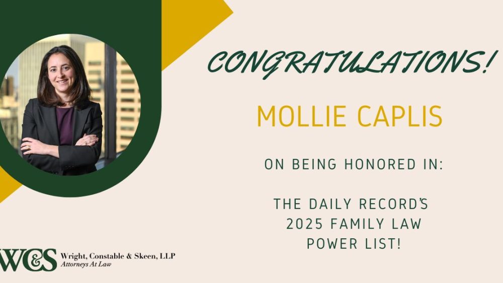Media Contact: Alycia Edwards Wright, Constable & Skeen LLP 410-659-1350 aedwards@wcslaw.com TOWSON, MD, October 2, 2025 – Wright, Constable & Skeen LLP is pleased to announce that WCS partner Mollie Caplis has been recognized on the 2025 Family Law Power List by The Daily Record. The Power List showcases... Read More »
